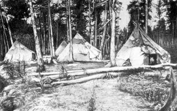 В таких юртах, похожих на вигвамы североамериканских индейцев, жили раньше кочевые обитатели тайги — тунгусы
