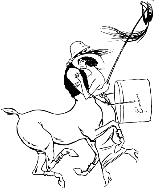Карикатура Сэма: Габриель в объятиях Боя, изображенного кентавром.