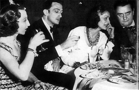 Светская вечеринка в Монте-Карло, 1938 г. Слева направо: Александра Данилова. Сальвадор Дали, Габриель Шанель и Жорж Орик.