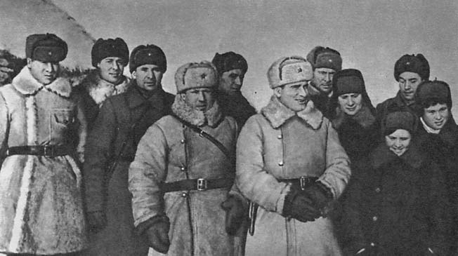 Делегация трудящихся г. Воронежа посетила 1-й гвардейский механизированный корпус под Сталинградом