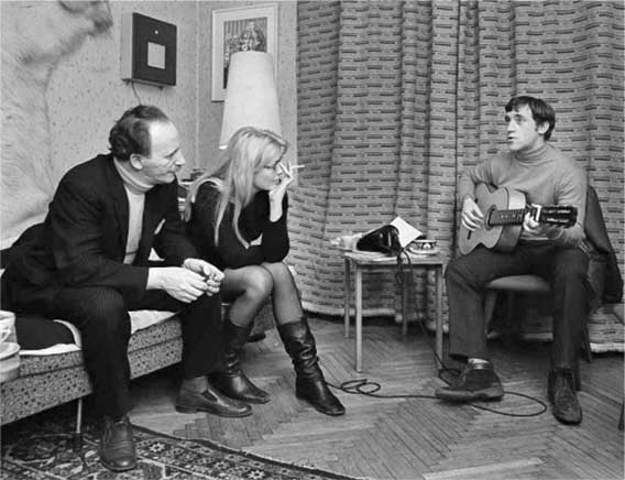 Слева направо: Макс Леон, Марина Влади и Владимир Высоцкий, Москва, февраль 1969 г. Фото: Деметер Балла