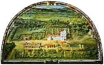 План виллы Поджио Империале во Флоренции. Джузеппе Руджери, 1772 г. Вверху: вилла дель Треббио, Юстус Утенс, XVI в., Музей истории города, Флоренция