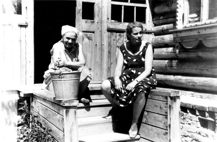 Слева от мамы наша с братом названая бабушка Вера Ивановна Ускова, ближайшая подруга маминой мамы. Подмосковье, деревня Малое Сареево, начало 60-х.