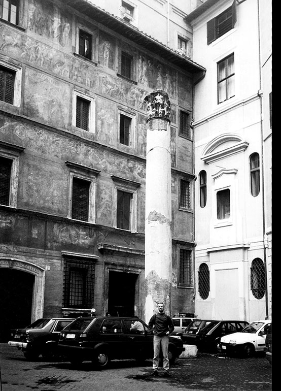 У «своей» колонны на Piazza de Massimi. Рим, 1996 г. Фото П. Вайля.