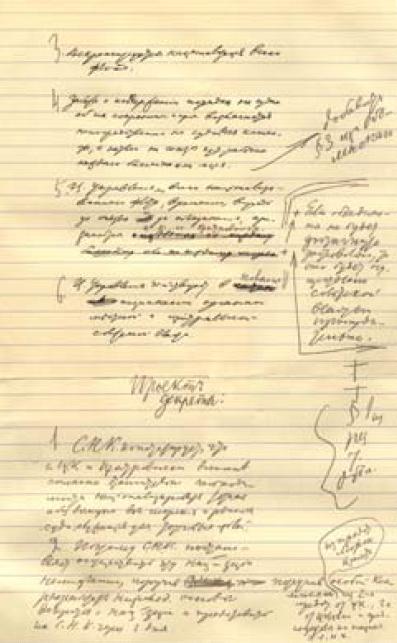 Рукопись В. И. Ленина проекта декрета о национализации морского и речного торгового флота. – 18 (31) января 1918 г.