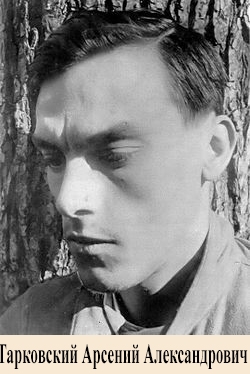Тарковский Арсений Александрович (12/25.06.1907, Елизаветград, ныне Кировоград (Украина) — 27.05.1989, Москва, СССР), русский и советский поэт (сторонник классического стиля), переводчик с восточных языков, отец знаменитого кинорежиссера.