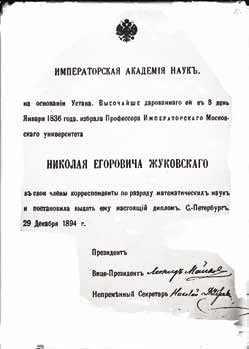 Постановление об избрании Н. Е. Жуковского членом-корреспондентом С.-Петербургской АН.
