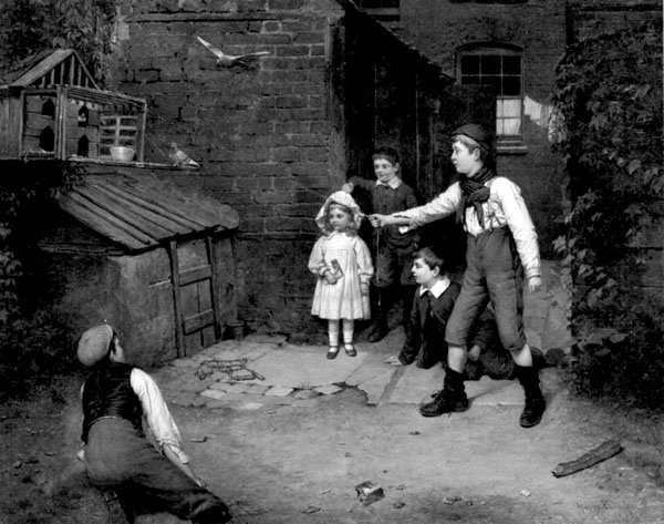 Но Мэри и ее сестры и братья не все время проводили на лондонских улицах, где было не очень-то чисто, а атмосфера была не слишком здоровой. Они много гуляли в лугах, окружающих Полигон, играли в вечные детские игры: прятки, догонялки, лошадки. Самыми распространенными игрушками у девочек, кроме кукол, были серсо и волан – прототип современного бадминтона. А вот скакалка была мальчишеской игрой: у девочек от нее могли слишком высоко задраться юбочки. Девочкам запрещалось кататься на палочках, лошадках-качалках и качелях-досках, то есть таких, на которых нужно было сидеть, раздвинув ноги – это могло преждевременно возбудить их и навести на неприличные мысли. Для мальчиков подобные занятия почему-то считались неопасными.