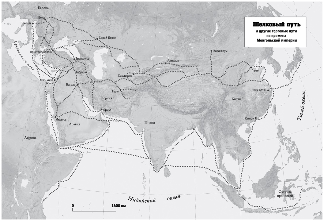 Начну повествование с XII века, когда один полководец завоевал почти все земли от тихоокеанского побережья до современной Восточной Европы, создав крупнейшую континентальную империю в истории человечества. В период расцвета площадь ее территории превышала тридцать миллионов квадратных километров, что в четыре раза больше размера любой из империй, существовавших до нее. Чингисхан не только объединил под одной политической крышей огромные территории, но и запустил процесс формирования физических, торговых и культурных связей между народами, который подхватит и усилит каждый из героев этой книги и который характеризует современный процесс глобализации. В истории этой империи проявились две стороны глобализации: нарушение прежнего порядка и разрушение и вместе с тем последующее установление мира, развитие и процветание. Чингисхан использовал грубую силу, устраивал жестокие побоища, но в итоге все это привело к появлению новых возможностей для торговли и культурного обмена.