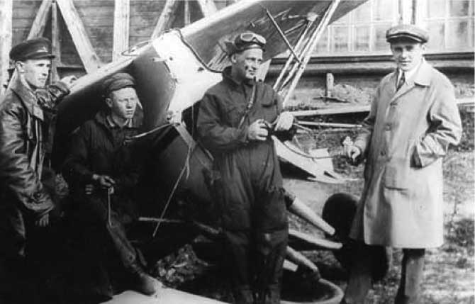 У самолета СК-4 после аварии. С. П. Королёв справа. 20 декабря 1931 года.