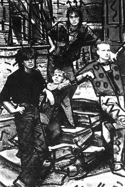 Кстати, о «бананах». Модными в 1981 году они, как вы помните, не были, и на битников, идущих на десять шагов впереди прогресса и театра моды Вячеслава Зайцева, смотрели как на идиотов. Но дело в том, что у нас была информация из первых рук — песня группы «Безумные» («Мэднесс») под названием «Багги траузер» («Мешковатые штаны») и пластинки с фотографиями этих известных на пяти шестых земного шара музыкантов. Покрой штанов «Безумных» показался нам интересным, и мы приняли это к сведению. Через пару лет, правда, вся золотая советская молодежь, а также прогрессивные кинорежиссеры и модные стареющие дамы тоже нарядились под «Безумных» в штаны-«бананы», не подозревая, откуда здесь ветер дует. Эти же респектабельные люди иногда носили на шейных цепочках и никелированные украшения в виде лезвий от безопасной бритвы — это тоже вошло в моду. Слава Богу, они не знали, как и советская промышленность, штамповавшая эти красивые штучки, что это изначально считалось отличительным признаком некрофилов.