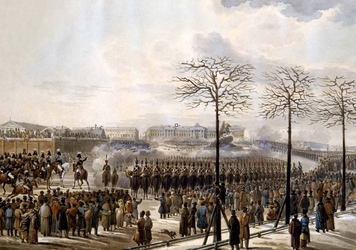 Восстание декабристов 14 (26) декабря 1825 года. Акварель К. И. Кольмана.