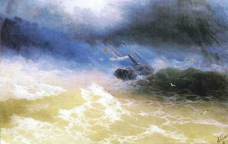 Айвазовский продолжал творить до последнего дня своей жизни. За два года до смерти, в 1898, он написал огромное полотно «Среди волн» (Феодосийская картинная галерея им. И. К.Айвазовского, Феодосия), ставшее апофеозом его творчества. Бурное, холодное, но в тоже время прекрасное море написано мастером в момент необычайного вдохновения и подъема. Живописец изобразил бушующую стихию — покрытое грозовыми тучами небо и вздымающееся тяжелыми громадами волн бушующее море. В картине нет ставших обычными для произведений художника деталей: обломков мачт и гибнущих кораблей. Наполняя композицию неистовым движением природных масс, Айвазовский, стремясь избежать трагической интонации, озаряет волны среднего плана ярким лучом.