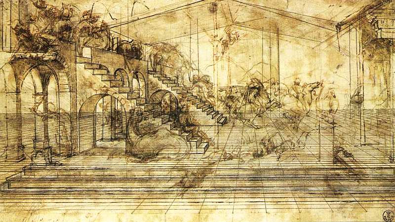 Но для начала будущему гению было необходимо получить образование. Являясь незаконнорожденным, сын не мог продолжить дело отца, как и стать, например, врачом или адвокатом. Оно и к лучшему. С самых ранних лет Леонардо демонстрировал незаурядные художественные способности, поэтому сэр Пьеро не мог пройти мимо этого факта в принятии решения о судьбе сына. Вскоре отец отдал восемнадцатилетнего юношу на обучение в одну из самых передовых и успешных мастерских живописи. Наставником Леонардо стал известный художник Андреа дель Вероккио. К счастью, Вероккио не проповедовал средневековые взгляды на искусство, а шагал в ногу со временем. Он интересовался образцами античного искусства, которое так и оставалось непревзойденным, стремился возродить традиции Греции и Рима. В тоже время в его мастерской широко использовались современные научные и технические достижения, благодаря которым живопись обретала все больший реализм. Схематичные и плоские изображения времен Средневековья уступали место стремлению во всем подражать природе. Для этого надо было овладеть приемами воздушной и линейной перспективы, понимать природу света и тени, а значит, не обойтись без знаний математики, геометрии, черчения, физики, оптики и химии. Леонардо обучался у Вероккио азам точных наук, параллельно овладевая техническими приемами рисования, занимался скульптурой и моделированием, приобретал навыки работы с металлом, гипсом и кожей. Его талант раскрывался настолько ярко, что уже вскоре молодое дарование с лихвой опередил опытного мастера по качеству и мастерству владения живописью.