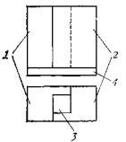 Какой была словолитная форма, применявшаяся Иоганном Гутенбергом, сказать трудно. Никаких сведений об этом не сохранилось. Можно лишь реконструировать принцип действия такой формы. В самом простом случае это были две Г-образные детали 1 и 2 (см. рисунок), составленные таким образом, что между ними возникала полость 3. Снизу полость закрывали матрицей 4 с прямым углубленным изображением шрифтового знака. Чтобы получить литеру, сверху в отверстие полости нужно было залить расплавленный металл.