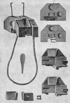 Гравюра И. Аммана конечно же не претендует на техническую достоверность. Первое достоверное описание словолитной формы, сопровожденное чертежами, встречается в книге Джозефа Моксона (1627–1691) «Механические упражнения, или Учение о ремеслах» (Лондон, 1683) [526]. Второй том этого интересного труда, обильно иллюстрированного чертежами и схемами, посвящен типографскому делу. Книга увидела свет почти через четверть тысячелетия после изобретения Гутенберга. Но известно, что ремесленная техника феодального способа производства в течение столетий оставалась неизменной. «…Раз соответственная форма инструмента эмпирически найдена, — утверждает Карл Маркс, — он перестает изменяться, как это и показывает переход его в течение иногда тысячелетия из рук одного поколения в руки другого» [527]. Поэтому можно предположить, что со времен Гутенберга до конца XVII в. словолитная форма изменилась мало.