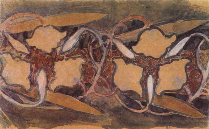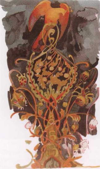 Эскиз панно Жар-птица, стерегущая заповедные яблоки 1896
