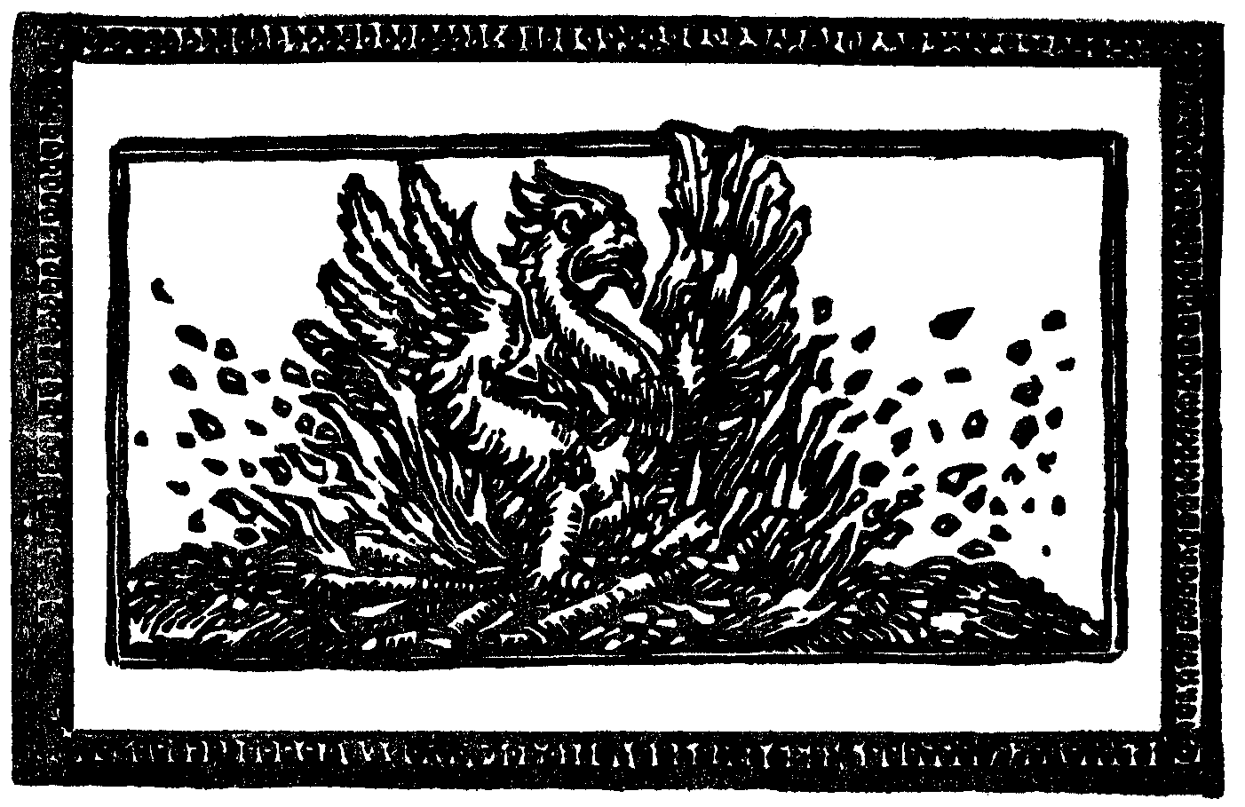 «Птицу феникс считают самой удивительной из всех птиц небесных. Одни пишут, что живет она в Аравии, другие, говорят о. других местах. Птица эта не размножается как другие птицы, но возрождается после смерти из собственного пепла. Живет она сто шестьдесят лет, а некоторые ученые утверждают, что и дольше. Еще говорят о ней, что на всем земном шаре одна-единственная такая птица, и она очень редко появляется на глаза людям. Величиной птица феникс с орла, шея блестящая, золотистая, в хвосте же есть розовые перья, лицо пухлое, на голове хохолок. От всех остальных птиц отличается двумя главными особенностями.