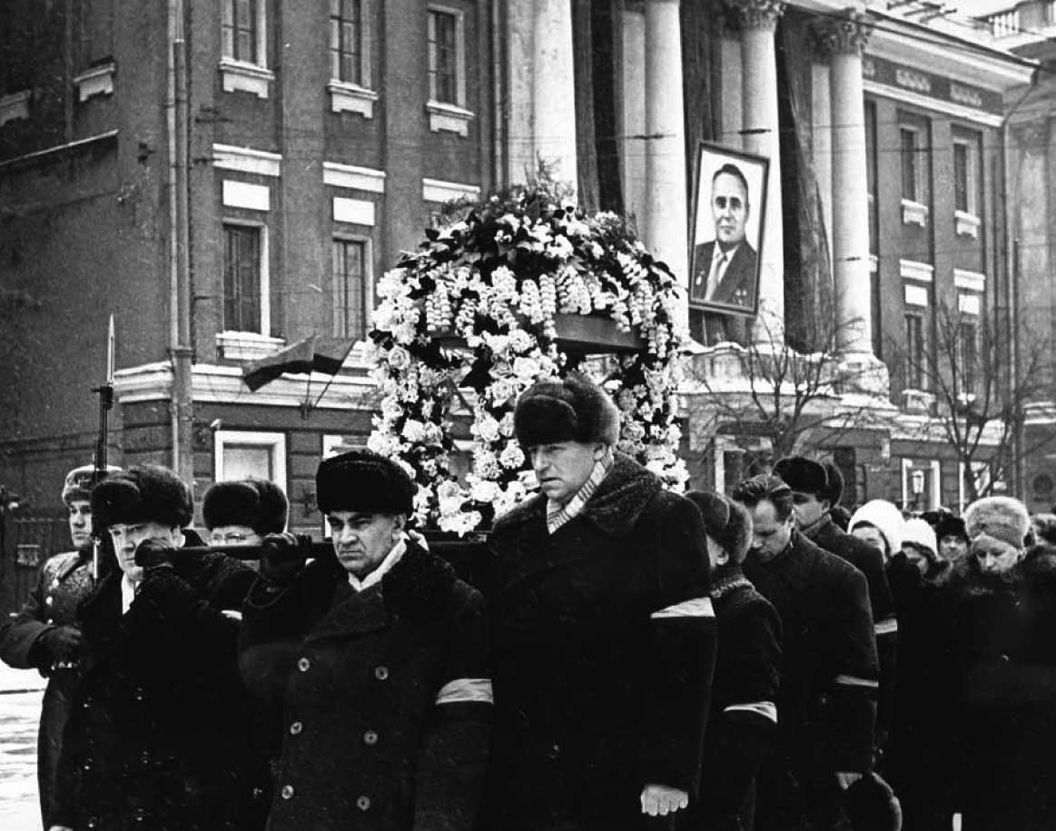 Похороны С. П. Королёва. Урну с прахом конструктора несут Л. В. Смирнов, М. В. Келдыш, С. А. Афанасьев. 18 января 1966 года.