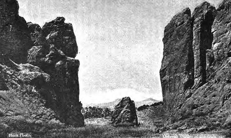 Въезд в «сад» совершается через ворота, образуемые узким ущельем с почти отвесными скалами. До этих ворот есть и леса, и кустарники, за ними — нет даже травинки: один голый камень.
