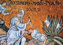 Авраам приносит в жертву Исаака. Мозаика в Кафедрале в Монреале, Сицилия.
