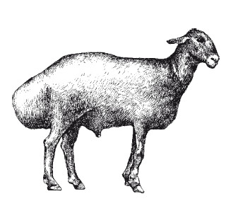 Овца в это время находится в устойчивом положении, она подготовлена для стрижки внутренней стороны задних конечностей и наружной стороны левой задней конечности. При стрижке на брюхе и между конечностями строго следят за тем, чтобы не поранить препуций, если стригут барана и валуха, или соски, если стригут маток и ярок. Область препуция обрабатывают поперечными проходами машинки справа налево. Первый проход машинкой делают по внутренней поверхности правой задней конечности от паха к скакательному суставу и дальше, а затем поворачивают машинку справа налево и делают обратное движение от скакательного сустава к паху. Если же и после этого на конечности осталась шерсть, то делают еще 1–2 таких прохода (рис., б). Левая рука стригаля при этом находится на правом боку овцы; при необходимости он ею надавливает на сустав, выпрямляя правую конечность животного. Затем машинкой проводят по промежности от правой задней конечности к левой.