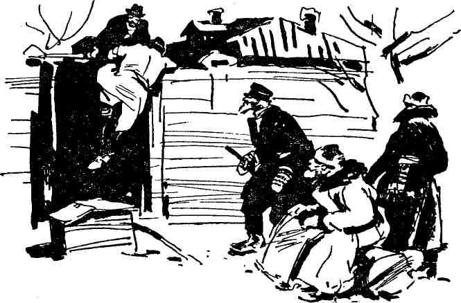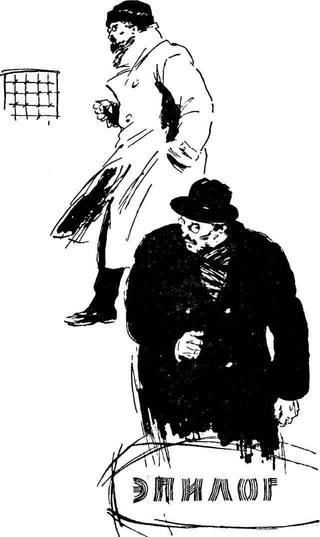 Но надо поскорее выбраться из незнакомого двора. Они пересекают его по прямой и, не найдя выхода на параллельную улицу, мгновенно решают перемахнуть через забор. Не оглядевшись, спрыгивают чуть не на головы трех стариков, мирно покуривающих под оградой. Это — ночные сторожа. С величайшим изумлением взирают они на двух весьма прилично одетых господ, только что весьма резво взявших барьер. На спор, что ли?