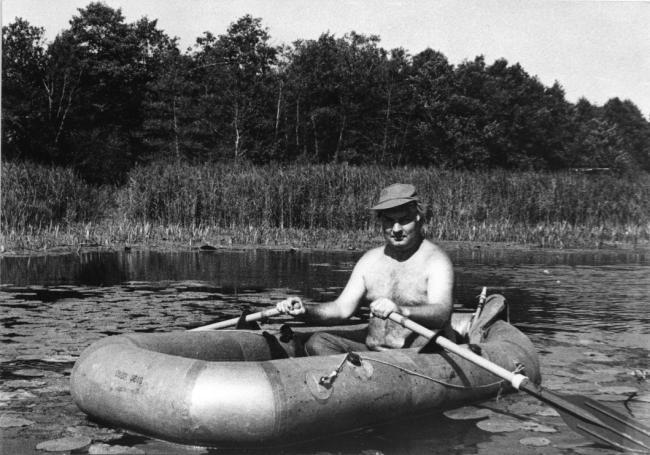 С одной из папиных рыбалок в годы моего детства связана одна веселая история, о которой мало кто знает. Папа как-то купил тяжеленную резиновую лодку и решил вместе с друзьями — Шурой Ширвиндтом и Андреем Мироновым — ее испытать. Велели маме отвезти их (вместе с лодкой) на машине подальше от дома мельника в Плескове и высадить на берегу Пахры. Оттуда они должны были добраться на лодке обратно, до дома, пройдя вниз по течению километров десять. Вначале шло все по плану: мама высадила их у реки, за десять километров от мельницы — там, где дорога подходила ближе к речке, и уехала.