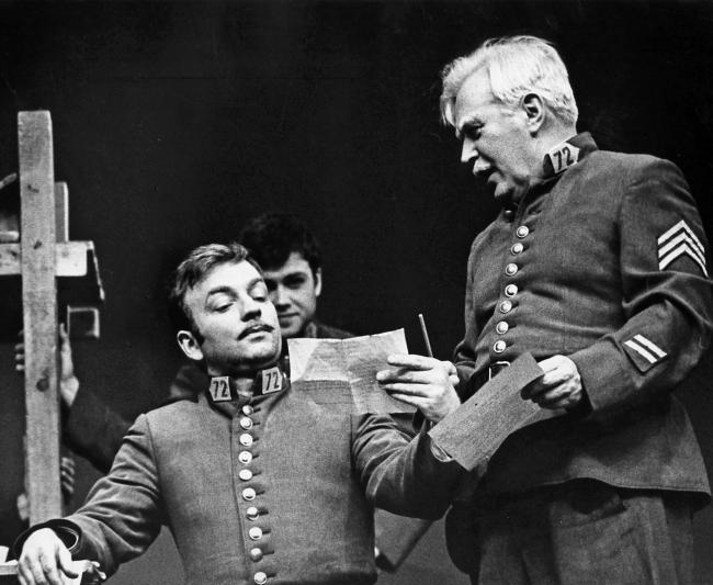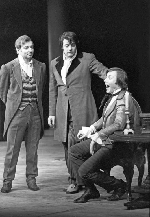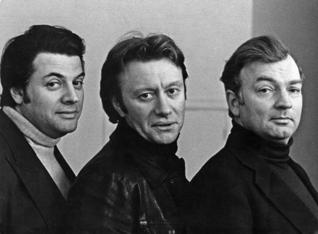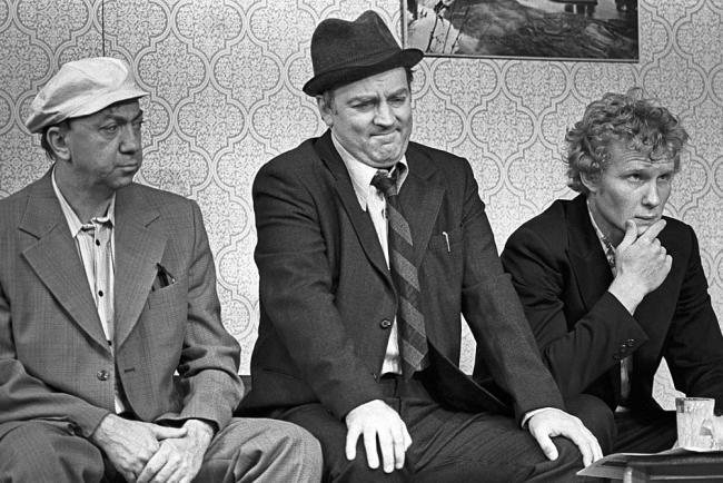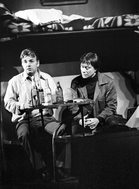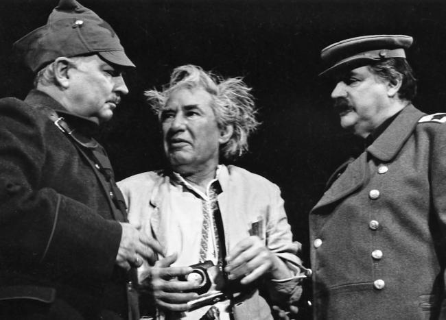 С Романом Ткачуком и Анатолием Папановым в спектакле «Последний парад» (1968)