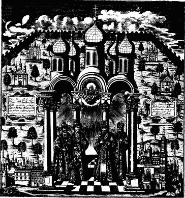 Цари-братья: ?еодоръ, Іоаннъ и Петръ (изъ книги Das ver?nderte Russland 1721)