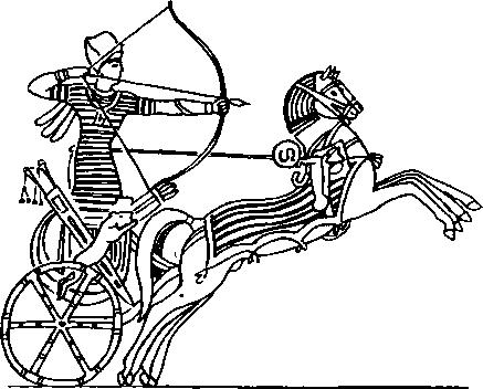Легкие колесницы, возглавляемые самим фараоном, имели существенное преимущество. Они могли из-за большой скорости диктовать расстояние и направление перестрелов, а в случае проблем — быстро уходить к своей пехоте.