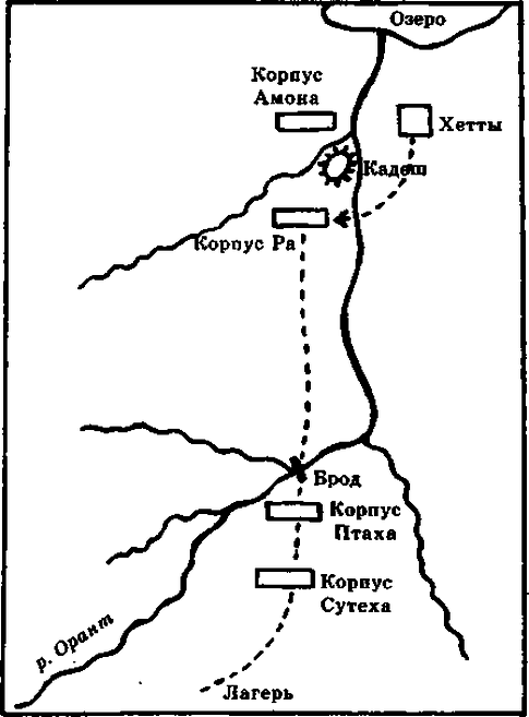 Расположение войск в битве при Кадеше (по «Истории Египта» Дж. Г. Брэстеда)