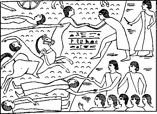 Сцена битвы при Кадеше: разбитые хетты ищут спасения, переплывая реку Оронт