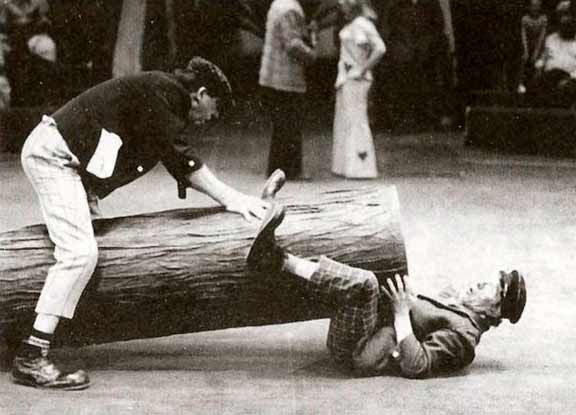 С неизменным партнером по манежу Михаилом Шуйдиным. «Бревно» — самая забойная реприза 70-х.