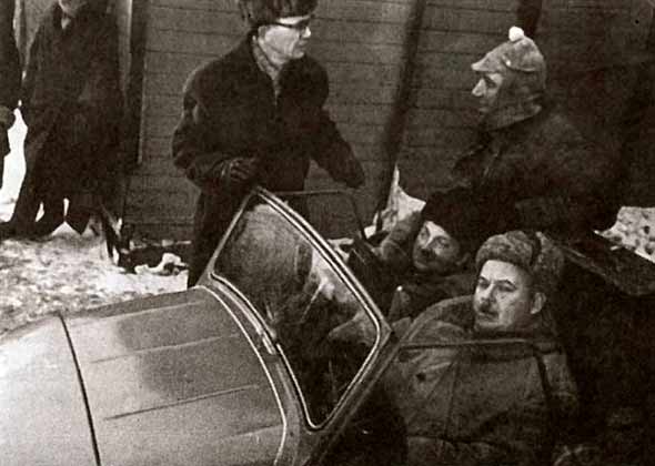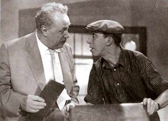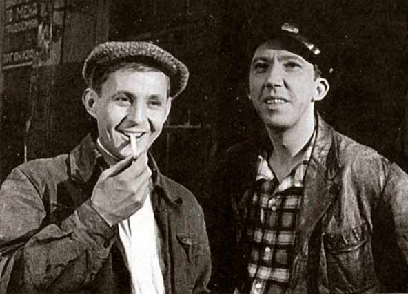 С киноартистами. Роль выпивохи Клячкина открыла ему дверь в большой кинематограф. «Неподдающиеся», 1959 г.