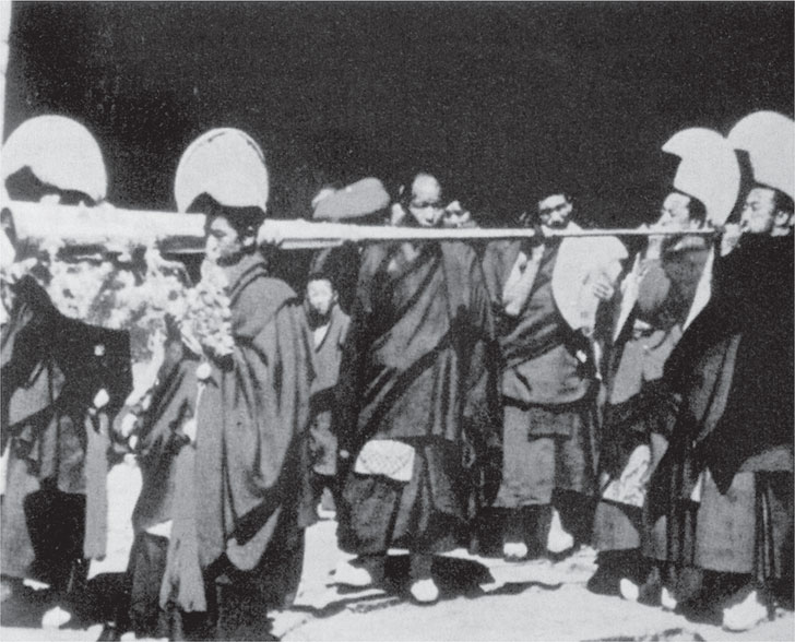 Члены «Красной секты» религии бон. В отличие от реформированного течения, которое предписывает строгое безбрачие, приверженцы этой конфессии живут в монастырях вместе со своими семьями