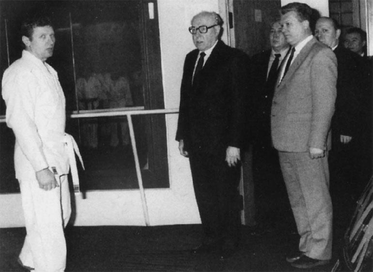 Председатель КГБ СССР В. М. Чебриков и Владимир Зайцев (слева, в кимоно)