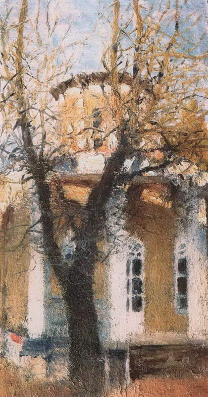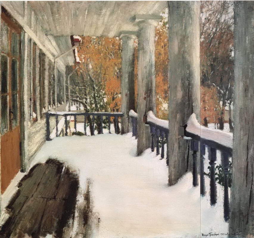 «Проснувшись как-то утром и взглянув в окно, я к удивлению увидел, что выпал снег: весь сад был в снегу, снегом была засыпана колонная терраса. Зрелище снега с ярко-желтой листвой было столь неожиданно и в то же время прекрасно, что я немедленно устроился на террасе...»2 В течение трех дней была написана картина Сентябрьский снег (1903) - работа зрелого художника, убежденного в своей эстетической концепции.