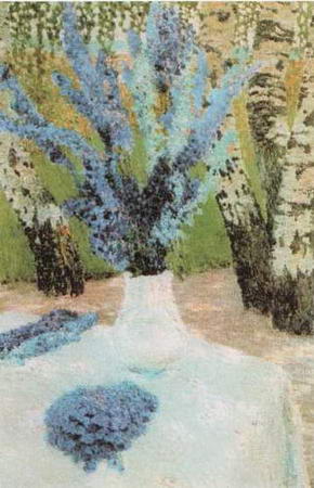 Но «от дивизионизма не легко было отойти», признавался художник. Его по-прежнему сильно привлекали мотивы, самой своей формой требовавшие применения раздельных мазков и разложения цвета - флоксы в утренней росе, цветы дельфиниума, изображение захода солнца, расплескивающего свет по всей многообразной фактуре видимого мира. Это был, по словам Грабаря, «махровый дивизионизм в самой натуре».