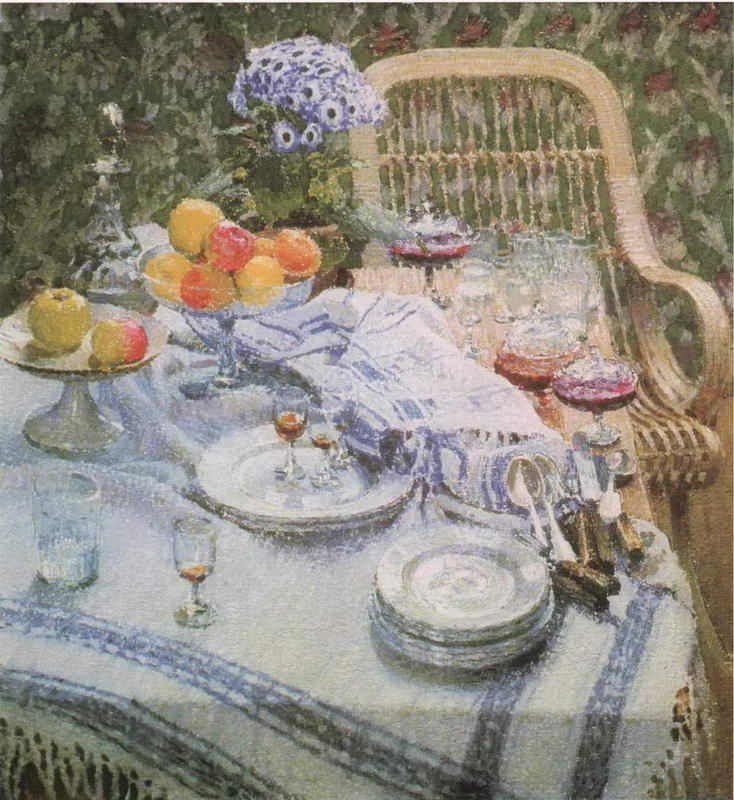 Декоративные поиски, которые Грабарь вел в пейзаже, продолжались и в натюрмортах - стремление к общему цветовому тону, к выражению красочной природы изображаемого мотива. Так, более декоративным выглядит Неприбранный стол (1907) с более «плотной» характеристикой предметов, с их контрастными фактурами и окрасками, с декоративным фоном.
