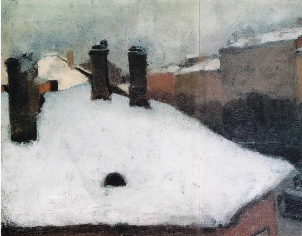 Живопись оставалась его главным интересом. На первом курсе университета Грабарь написал свой первый значительный живописный этюд, имевший успех среди его друзей из Академии художеств. Это была Крыша со снегом (1889), написанная из окна комнаты одного из университетских товарищей на углу Владимирской улицы и Графского переулка. Эффектная диагональ композиции, сопоставление заснеженной плоскости крыши с уходящей вдаль перспективой домов достаточно много говорят о художественном даровании Грабаря. И в других работах университетского периода (В вагоне конки, 1891; Лампа с зеленым абажуром, 1891; Няня с ребенком, 1892) заметно стремление молодого художника к обобщению форм, поиску острых композиционных решений, к трактовке изображения не детально, а массами, и главное - к свежему интенсивному колориту. В эти годы формируется отношение Грабаря к натуре, которое впоследствии легло в основу его манеры.