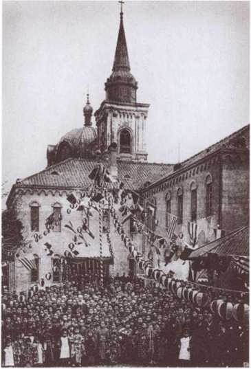 Русские семинаристы и прихожане перед собором Воскресения Христова (Николай-до). 11 июля 1906 г.