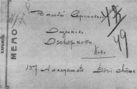 Импровизированная «визитка» Ощепкова с его адресом в Кобэ.