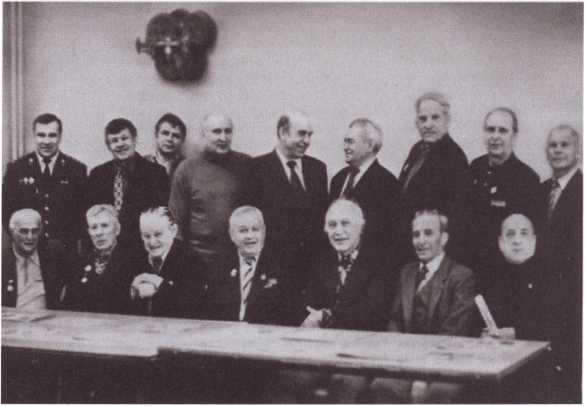 Те, кто знали и помнили, «как все начиналось». Сидят: третий слева — Николай Галковский, четвертый — Андрей Будзинский, пятый — Виктор Балашов. Стоит третий слева — Лев Матвеев. 1980-е гг.