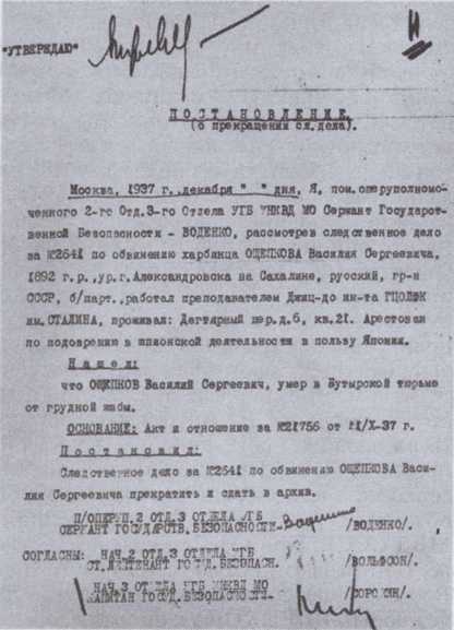 Акт о смерти В. С. Ощепкова. ГАРФ.