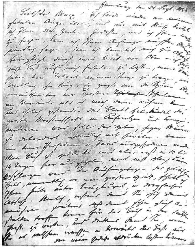 Гейне было необычайно приятно повидаться с матерью и сестрой, которых он по-настоящему трогательно и нежно любил. Ему хотелось показать своим родственникам красивую парижанку-жену. Но Матильда проявила очень мало интереса к своим новым родственникам. Она явно скучала среди людей, языка которых не понимала, И Гейне в начале августа отправил ее в Париж под предлогом болезни ее матери. Сам же он оставался в кругу родных до 9 октября.