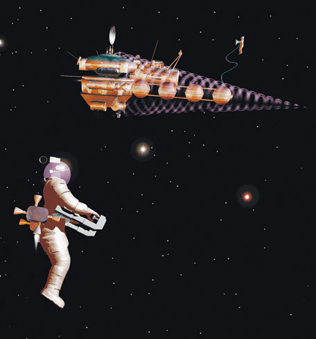 Этот свет видят и астронавт-наблюдатель, и пассажиры корабля. Однако они по-разному оценят, какое расстояние прошел свет после отражения.