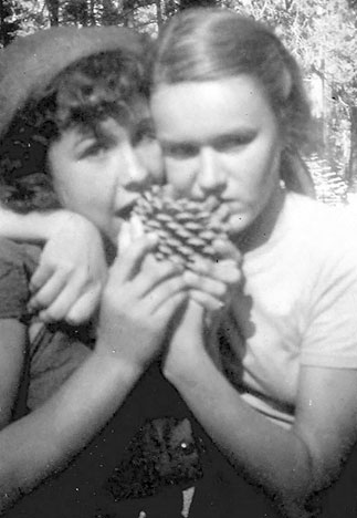 В те годы мы с ней больше жили эмигрантской жизнью, чем американской: ездили в скаутский лагерь, а немного повзрослев – на русские балы в Сан-Франциско. В скаутах нас воспитывали в русском духе, читай – в духе ностальгии по старой России и борьбы с большевиками. По утрам мы подымали сперва русский флаг (под гимн «Коль славен наш Господь в Сионе»[344]), а следом – американский, гордясь этой последовательностью. Затем пели скаутский гимн «Будь готов, разведчик, к делу честному…», кончавшийся словами «За Россию будь всегда готов!»[345]; каждый вечер у костра пелись белогвардейские песни, а иногда и власовский гимн «Мы идем широкими полями». Летний лагерь переносил подростков во времена Гражданской войны и 1920-х годов, когда белые эмигранты надеялись вернуться в Россию победителями. Тогда среди них была и моя семья, но с того времени прошло больше тридцати лет! В лагере, где было весело, я об этом еще не задумывалась. Мы с Мариной любили развлекать остальных: на фотографии изображаем «лагерный голод», заставляющий нас есть шишки[346].