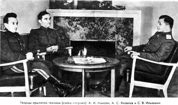 Творцы крылатой техники (слева направо): А. И. Микоян, А. С. Яковлев и С. В. Ильюшин