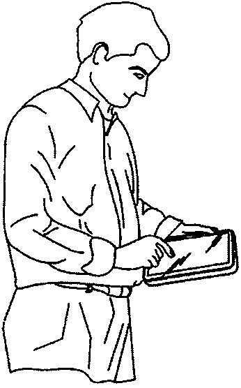 Серед винахідників значаться Джобс та Айв. У тій заявці містилися ескізи прямокутної електронної таблетки із заокругленими краями, яка виглядала точно так, як згодом iPad. Між ескізами був один, на якому чоловік буденно тримав пристрій лівою рукою, а правим указів-ним пальцем торкався екрану.